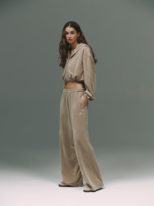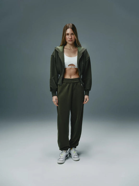 Vyprodáno044 Palazzo & Zip Hoodie KHAKI