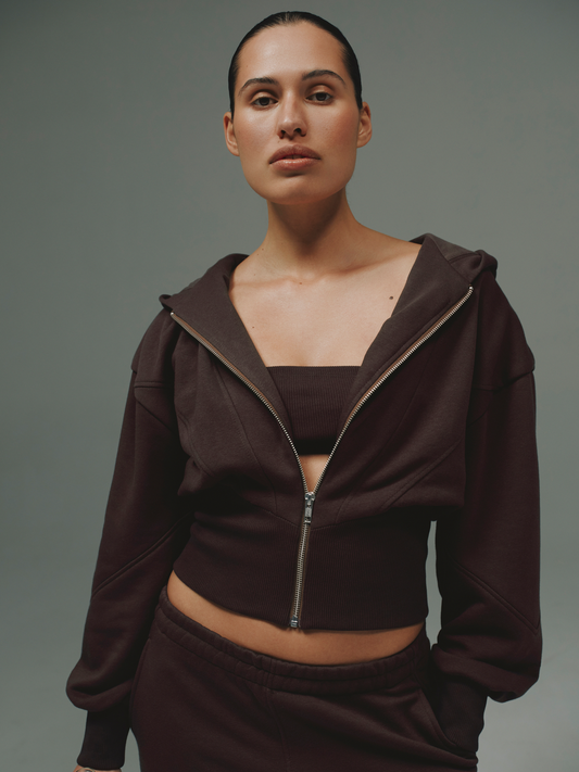 VyprodánoZip Hoodie Cropped Corset CHOCO